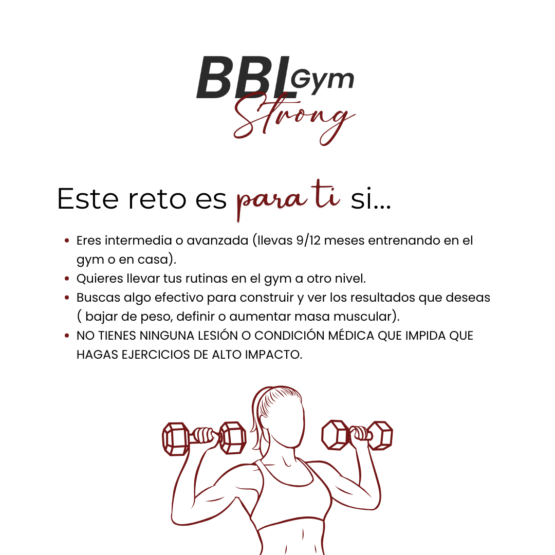 Este programa contiene rutinas en gym avanzadas para glúteos, piernas, abdomen, brazos y core, que son de otro nivel, y que te harán sentir los cambios en tu cuerpo desde las primeras semanas. Tendrás tutoriales de postura y técnica + el acompañamiento en la ejecución en todas las series, todo para que le saques provecho al gym y construyas los resultados que tanto deseas.